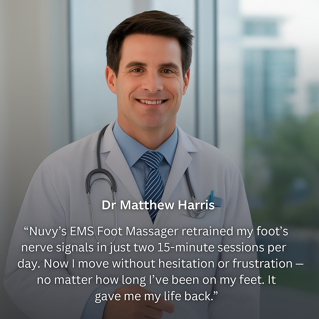 Unlike circulation boosters or cheap foot pads that only vibrate, the Nuvy™ EMS Foot Massager targets the small, overlooked muscles that lift and stabilize your foot. By restoring clear nerve-to-muscle communication, it helps your feet “remember” how to move when you need them most.